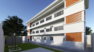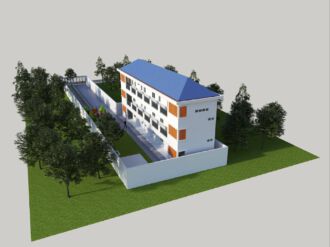 To keep the costs to an affordable level, whilst ensuring that all teaching and community objectives could be met, the Project Board took the decision to go ahead with the infrastructure for the ground, first and second floor but only build out the ground and first floors with 6, 7m x 5m classrooms, toilets and hand washing facilities. The development of the second floor will be at a later date when requirements are better understood. The second floor will be reached by staircases at each end, will be fully tiled, have safety rails all around and electric supply and overhead lighting. It can be used for community or school events such as openair teaching, sheltered playground during the rainy season or if fitted with additional nets, a sports area.